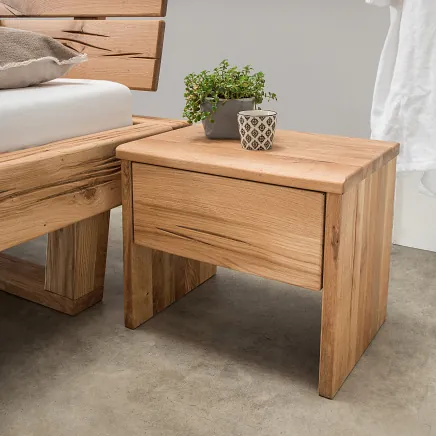 Naturmerkmale wie Wunchsrisse und kleine Unebenheiten sind gewollt, und machen jedes Bett oder Nachttisch einzigartig.